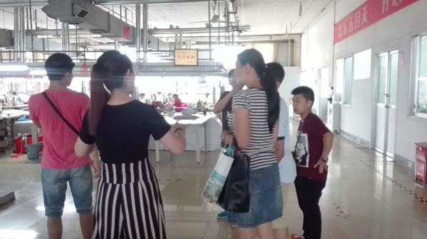 辅导员们通过对学员们的多次评估,部分学员们可以在工厂进行简单重复的操作,辅导员重点寻求简单重复操作工作岗位后,通过熟人介绍和网上搜索,决定尝试太平鸟服装制造有限公司的操作性岗位。在与柳主任多次沟通后,两名辅导员又到实地去查看了地址、环境,参观了工厂的各个车间,觉得有可以让学员们操作的岗位。回基地与辅导员、学员们探讨,确定带三名基本符合就业要求的学员去太平鸟服装制造有限公司匹配工作。