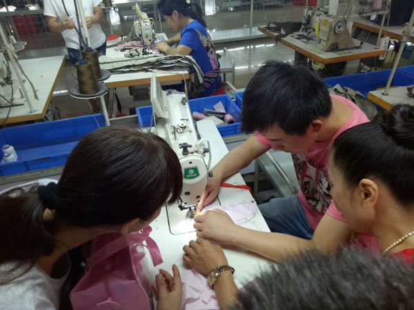 在学员们参观学习踩踏缝纫机时的时候,柳主任讲解了工作时间、食宿等我们最关心的问题,最后全体成员全面了解了工厂环境和交通环境后,我们离开了太平鸟服装制造有限公司。