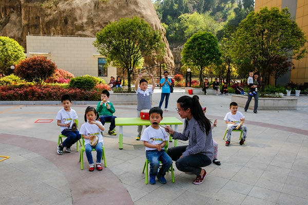 活动开始,由彩虹班的小朋友为大家表演个暖场节目吧,乐器齐全,有模有样呢。