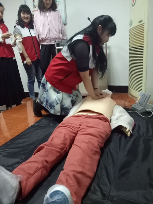 在培训中,裴老师紧密结合日常生活中可能遇到的问题,以及生活中常见的意外伤害,并通过大量日常实例,对创伤止血包扎、心肺复苏术、常见事故处置技能等倾囊相授,受到志愿者们的热烈欢迎。