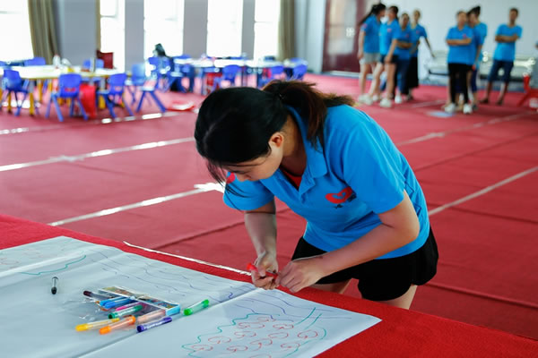 刚开始的时候,我们这个组没有默契。在两人三足三人两足等整个系统游戏中,我们成绩落后。虽然我们成绩不如人意,但是我们没有放弃,我们明白在这个组,每个人都是重要的小小螺丝丁,都有不可或缺的能量。我们不抛弃不放弃,完成了比赛的过程,总结了比赛的经验。我们订好了目标:在下场要更努力,争取在第一天取得一个好成绩。