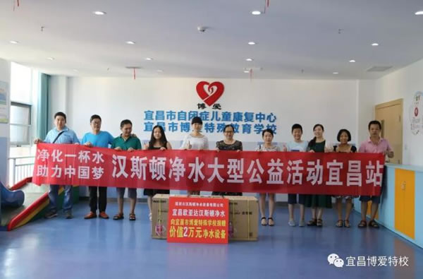 2018年8月19日,伍家区妇联、深圳市汉斯顿净水设备有限公司(宜昌欧亚达汉斯顿净水)利用休息时间走进宜昌市自闭症儿童康复中心(博爱特殊教育学校)关爱特殊群体,为我们赠送了净水设备。感谢你们。