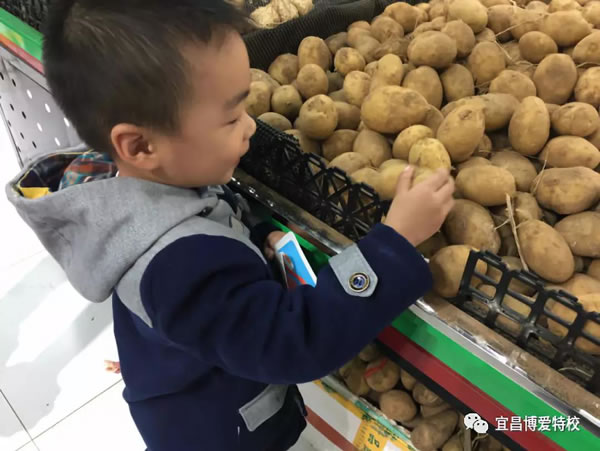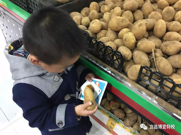 老师帮我挑选好,让我拿去找阿姨帮忙称一下,犹豫了一下,走上前去,按着老师先前教我说的“阿姨,帮我称一下”后,将土豆给了阿姨,阿姨对我很热情,帮我称后,还夸奖了我,说我很棒。
