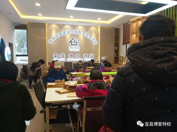 2018年12月10日,经学校委派到武昌参加本次会议,11日上午,安排所有参会人员参观学习了徐家棚街残疾人阳光家园和水果湖街残疾人阳光家园.两阳光家园开展的都是成年残疾人的日间照服务,在徐家棚阳光家园,接受家园日间照料的残疾人有1000多人,他们有精神障碍患者训练和肢体和智力等残疾人日间照料,每周开展益智训练、心理健康培训、户外阳光、音乐治疗、美丽心灵手工坊、快乐音箱、生活技能、艺术表达 美术治疗 阳光歌友会 阳光运动 书法等课程.还利用各种资源给残疾人开了庇护性工厂,手工坊、烘焙坊等让残疾人能过自己的劳动获得一收些收入,在两个阳光家园,他们的志愿者资源利用得非常好,工作人员把志愿服务团队分组,每个团队负责的内容分好时间段,每天有固定的志愿服务团队来家园辅导残疾人或者带残疾人到固定的地方开展相关活动.有很多的志愿服务团队来为这些人服务,每天在阳光家园的固定工作人员并不多.