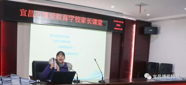 2018年12月14日上午,宜昌市自闭症儿童康复中心(博爱特校)在江南校区13楼会议室开展12月家长培训。