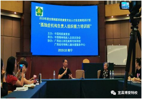 孤独症机构负责人组织能力培训班由中国残联康复部主办,中国精协承办,广西幼儿师范高等专科学校和广西幼专特殊儿童关爱服务中心协办的2019全国残联系统康复专业人才实名制培训项目“孤独症机构负责人组织能力培训班”昨天在广西南宁落下帷幕。宜昌博爱负责人冉存英与全国各地孤独症服务机构负责人共同参加了此次培训。