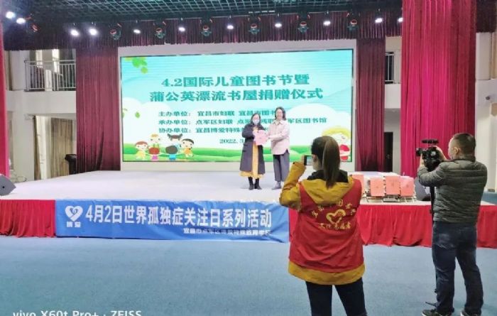 为关爱特殊儿童的健康成长,培养孩子们的阅读兴趣,在“4.2国际儿童图书节”同时又是“世界孤独症关注日”的到来之际,2022年3月25日上午,宜昌市图书馆、点军区妇联、点军区残联、点军区教育局、点军区图书馆拟联合赴宜昌市点军区博爱特殊教育学校开展了“4.2国际儿童图书节”暨“蒲公英漂流书屋”捐赠仪式。
