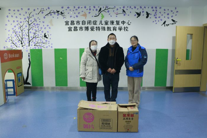 2023年2月8日吉祥主陀義工團的两位爱心人士来到宜昌点军区博爱特殊教育学校看望孩子们,还为孩子们准备了许多礼物。