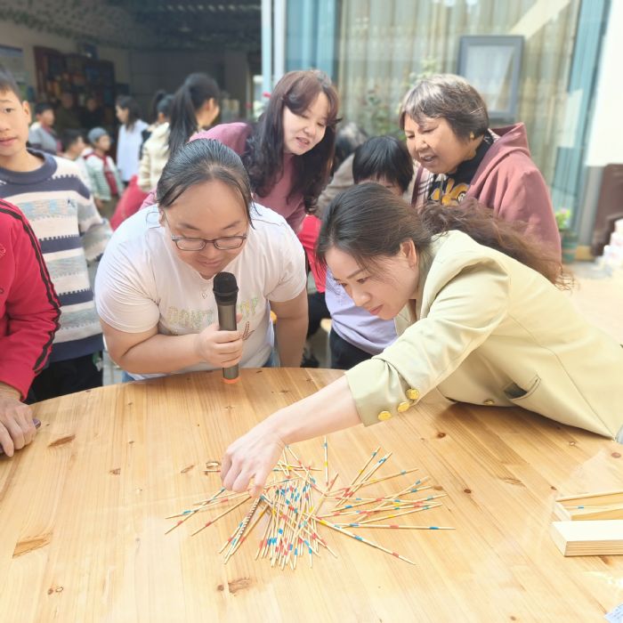 亲子融合活动中,趣味魔方游戏里,家长陪伴在孤独症孩子身边。孩子们对魔方有着独特的兴趣,眼神中带着好奇,用稍显僵硬的动作转动魔方,尽管速度不快,但那认真的模样仿佛世界都只剩下手中的魔方。挑小棒环节,家长和孩子们紧张地盯着小棒,呼吸变得急促,在家长鼓励的目光下,手指轻轻颤抖着抽出小棒,成功时那纯真的笑容绽放在脸上。而做棉花糖环节,孩子们看着飞舞的糖丝,眼中露出惊喜,在家长协助下制作棉花糖时,嘴角微微上扬,品尝棉花糖的甜蜜时,他们的快乐感染了在场每一个人。
