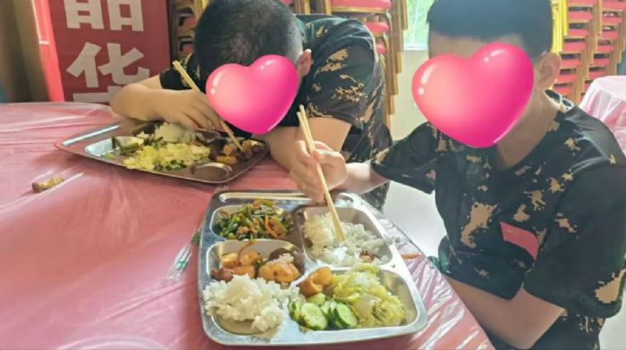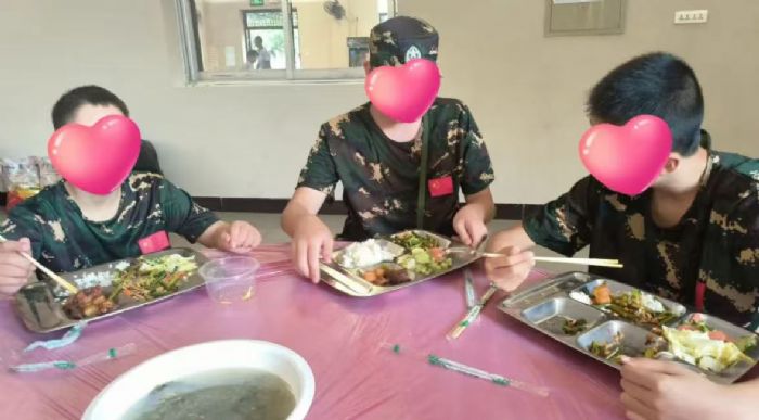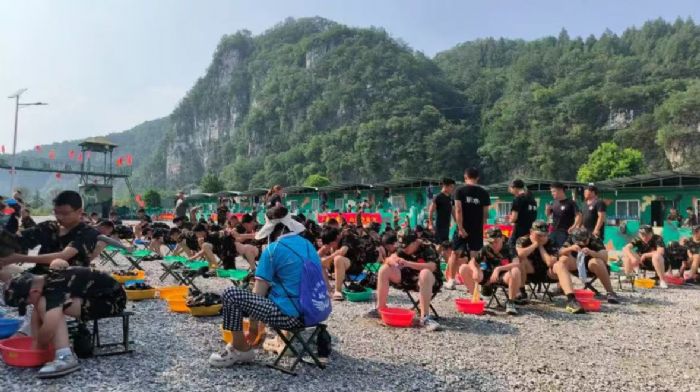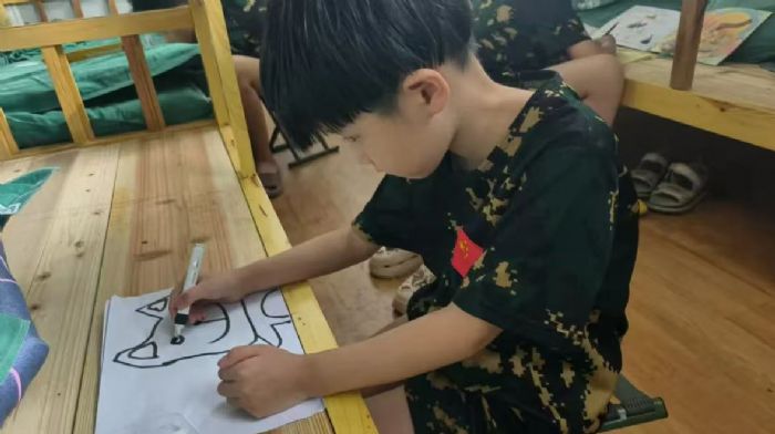 身穿迷彩服的孩子们指尖揉搓,教官和老师示范协助。洗衣盆的水面倒映出认真的脸庞。每一次用力揉搓飞起的泡泡,是独立生活的第一枚勋章。